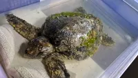 On Saturday, July 26, a juvenile loggerhead turtle, Jeff, arrived at our Rescue Center. She was found near the settlement of Kanegra near Umag by a Slovak citizen, whom we sincerely thank. This individual was found further north than any turtle previously admitted to the Rescue Center. She is currently in critical condition, weighing 2.8 kg, with a shell length of 11.7 cm, and is approximately one year old.